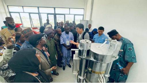 隨后,中國(guó)農(nóng)業(yè)科學(xué)院農(nóng)產(chǎn)品加工研究所石愛民研究員及焦博副研究員分別就“花生原料加工適宜性評(píng)價(jià)技術(shù)”、“花生精深加工與綜合利用技術(shù)”進(jìn)行了授課培訓(xùn),并開展了“便攜式高通量花生品質(zhì)速測(cè)儀”現(xiàn)場(chǎng)演示和“花生高效制油技術(shù)”實(shí)地操作。來自尼日利亞農(nóng)業(yè)研究委員會(huì)、聯(lián)邦農(nóng)業(yè)部、聯(lián)邦婦女事務(wù)部、阿布賈大學(xué)以及花生種植大戶等共計(jì)50余名學(xué)員出席揭牌儀式并參加培訓(xùn)。